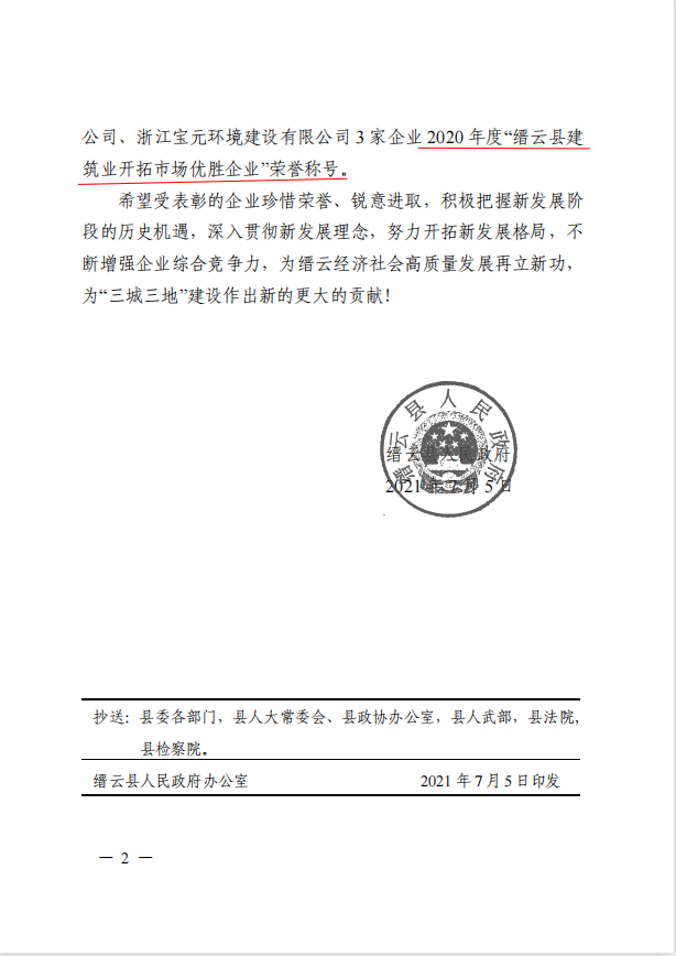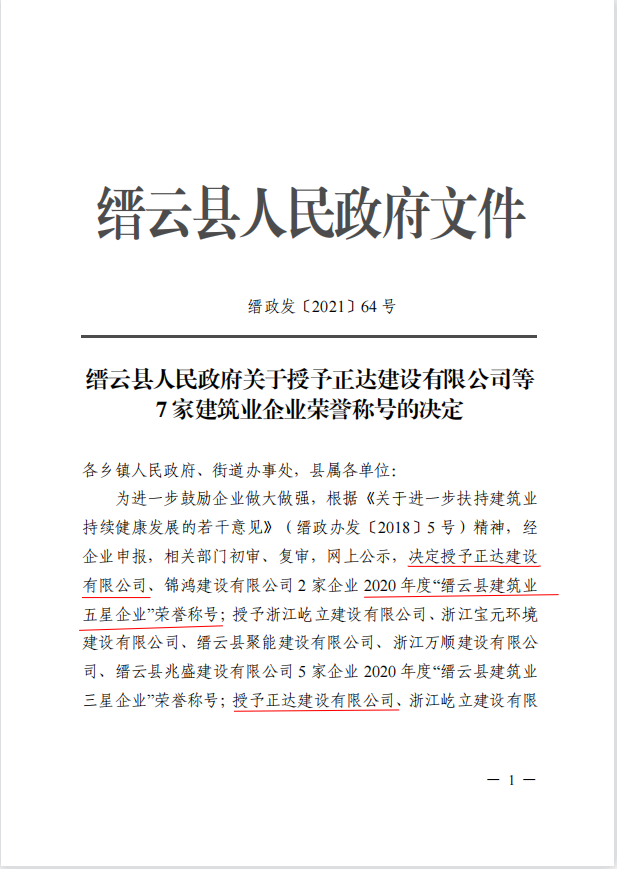 重磅榮譽(yù),實(shí)力見證!正達(dá)建設(shè)榮獲“2020年度縉云縣建筑業(yè)五星企業(yè)、開拓市場(chǎng)優(yōu)勝企業(yè)”榮譽(yù)稱號(hào)