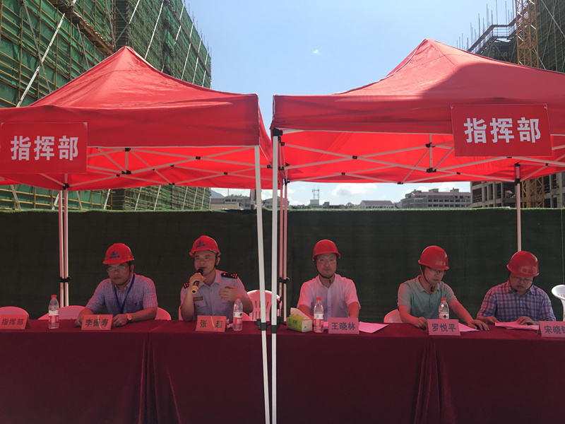 青田縣建筑施工“安全生產(chǎn)月”消防應(yīng)急救援演練觀摩會,于2019年6月27日在正達建設(shè)有限公司青田壹德·左岸藍灣城市廣場工程施工現(xiàn)場召開。青田縣住房和城鄉(xiāng)規(guī)劃建設(shè)局、青田縣應(yīng)急管理局、青田縣消防救援大隊領(lǐng)導(dǎo)及相關(guān)人員,青田縣各建筑施工、監(jiān)理企業(yè)負責(zé)人及分管安全負責(zé)人,青田縣所有在建工程項目負責(zé)人及總監(jiān)等嘉賓和領(lǐng)導(dǎo)參加觀摩。