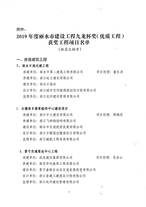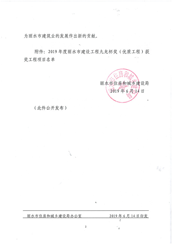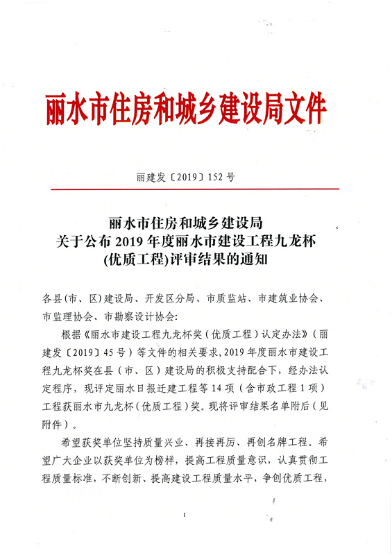 正達(dá)建設(shè)有限公司 榮獲“2019年度麗水市建設(shè)工程九龍杯(優(yōu)質(zhì)工程)”獎(jiǎng)