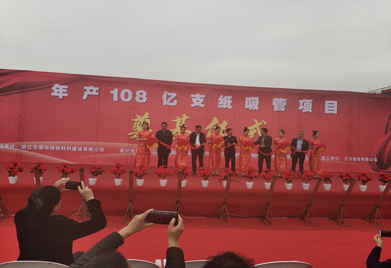 正達(dá)2019年11月18日,風(fēng)和日麗,瑞氣呈祥,在浙江華蒙環(huán)保新材料有限公司年產(chǎn)108億支紙吸管項(xiàng)目現(xiàn)場,隆重舉行開工奠基儀式,拉開了年產(chǎn)108億支紙吸管項(xiàng)目開工建設(shè)的序幕!