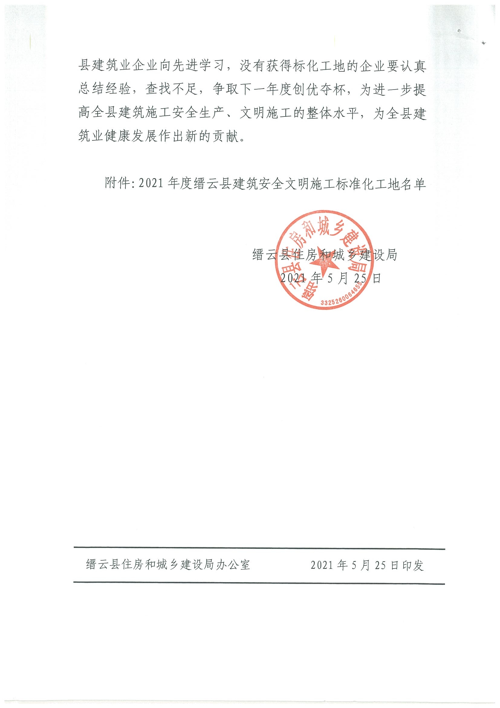 喜報(bào)!公司兩項(xiàng)工程獲縣安全文明標(biāo)化工地